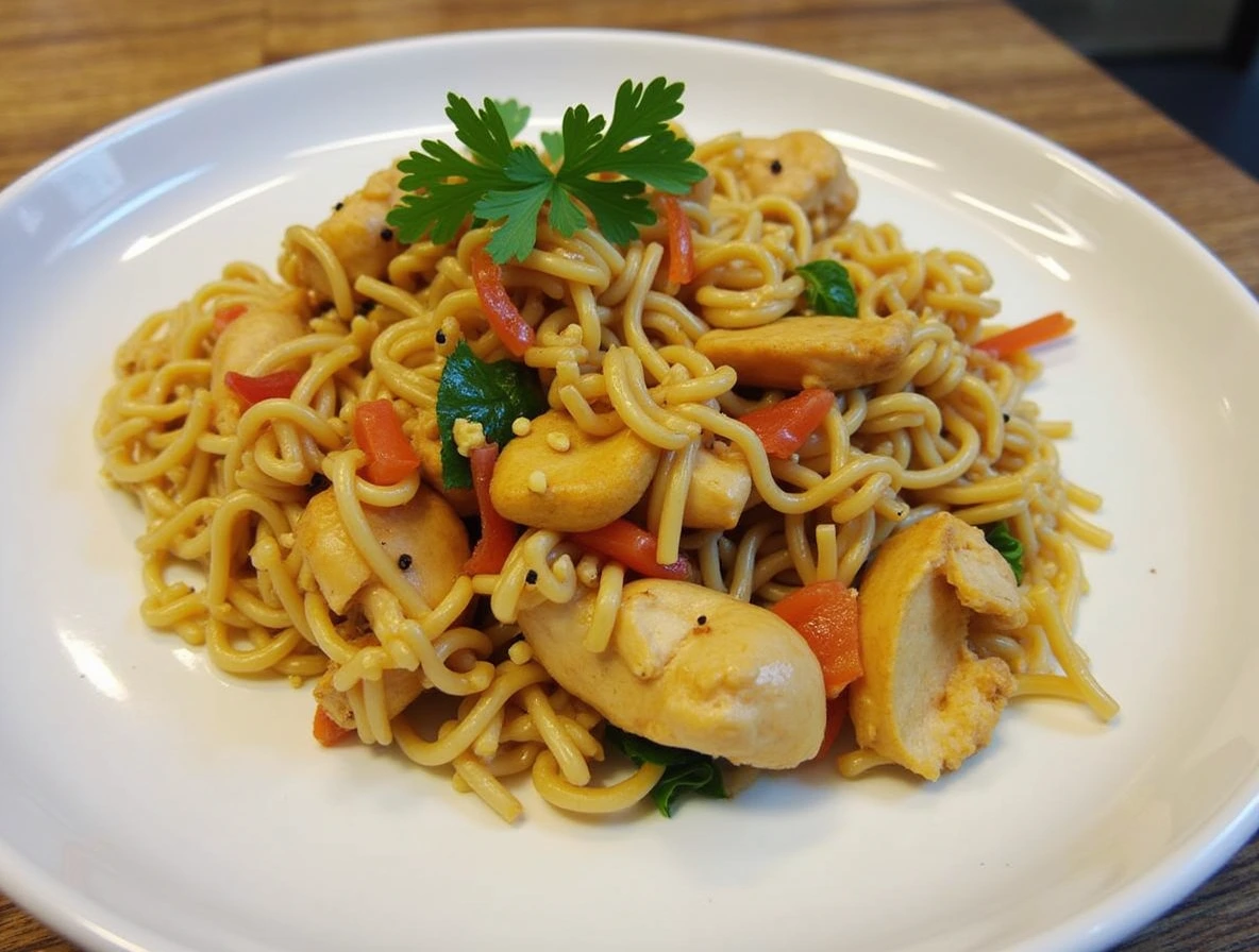 Finally, it’s time to serve your delicious Thai Chicken & Peanut Noodle Stir-Fry! Transfer the stir-fry to serving plates. For a beautiful presentation, garnish with chopped peanuts and fresh cilantro. This adds a nice crunch and a burst of freshness. Enjoy your meal hot, and watch everyone savor each bite!